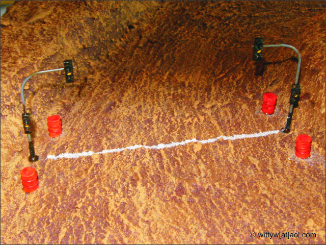 Im Streckenbereich wurden mit einem schmalen Borstenpinsel die Fahrspuren modelliert. Der Vorteil dieser