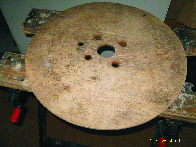 Es sollte eine kleine, einfache Platte für zwischendurch werden. So schaute ich mich nach geeignetem Material um, das da war. Und ich fand das Seitenteil einer Kabeltrommel, Durchmesser 50 cm.